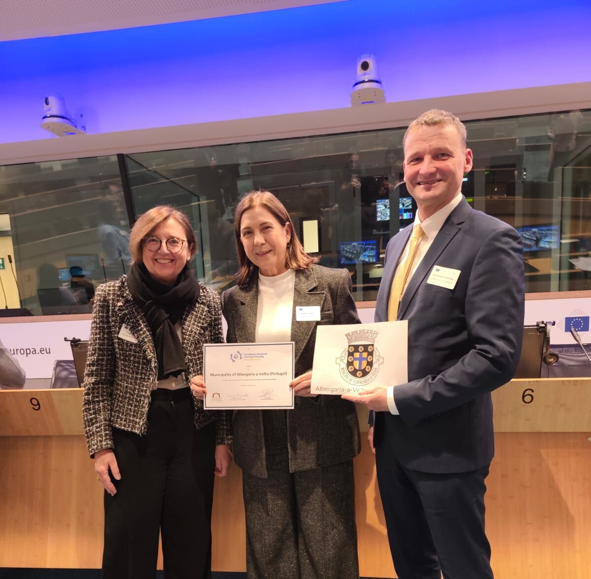 No congresso, o Presidente da ELFAC (Confederação Europeia de Famílias Numerosas), Radoslaw Waszkiewicz, e a Coordenadora da Family Cities Network, Regina Maroncelli, entregaram o certificado de membro da Rede Europeia de Municípios Amigos da Família ao Município de Albergaria-a-Velha.