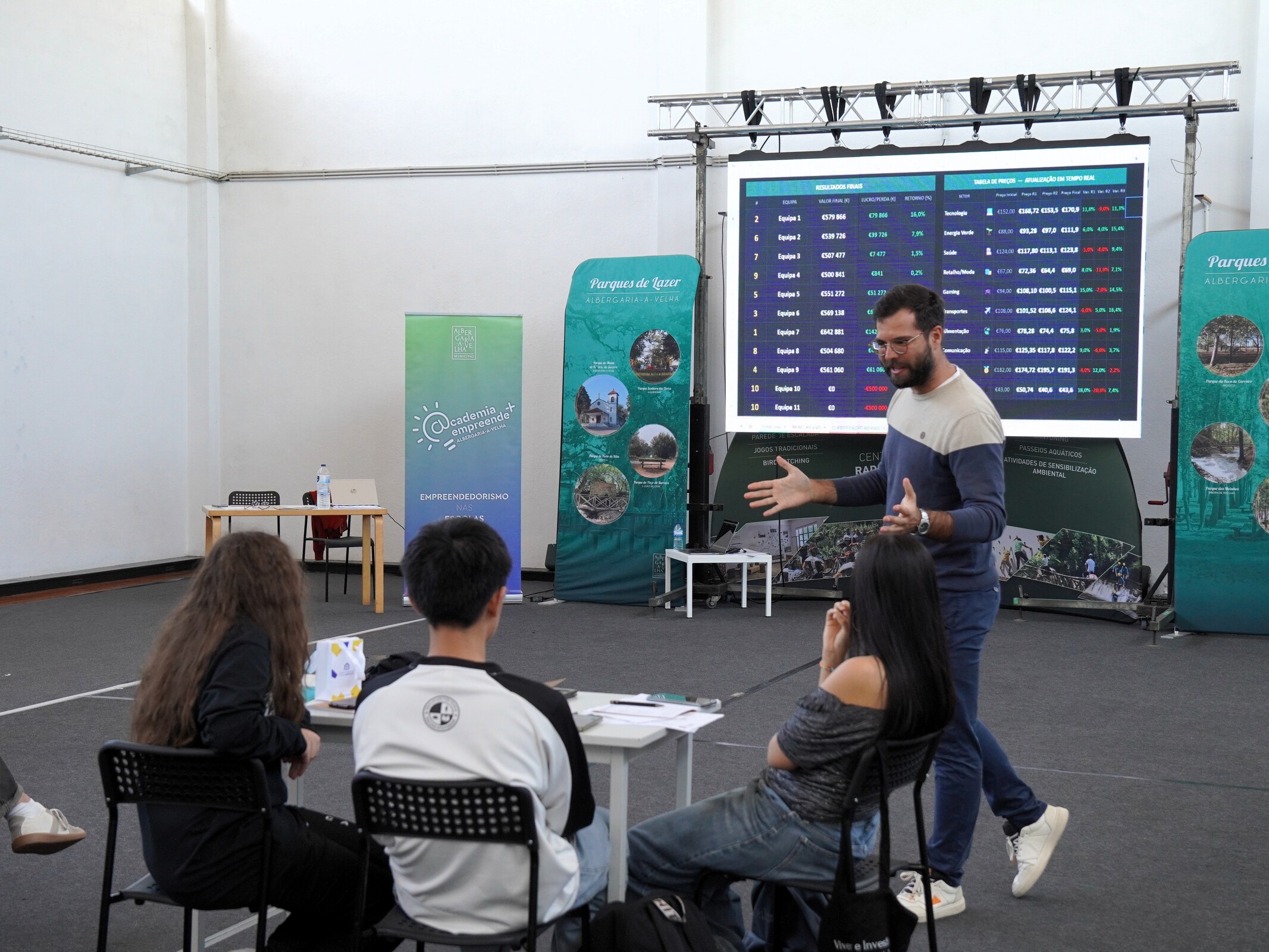 Ao longo de três horas, 28 alunos do Ensino Secundário, divididos em 9 equipas, debruçaram-se sobre “notícias” dos mercados financeiros, analisaram tendências e avaliaram o risco para fazer crescer a sua poupança de 500 mil euros. Foi assim a Competição AlbergariaInvest, que decorreu ontem à tarde na Incubadora de Empresas de Albergaria-a-Velha, no âmbito da Academia Empreende+.